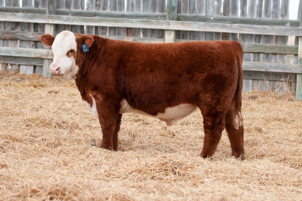 909 is still working hard at the oldest and largest commercial Hereford herd in Crook County. Sires beautiful daughters.